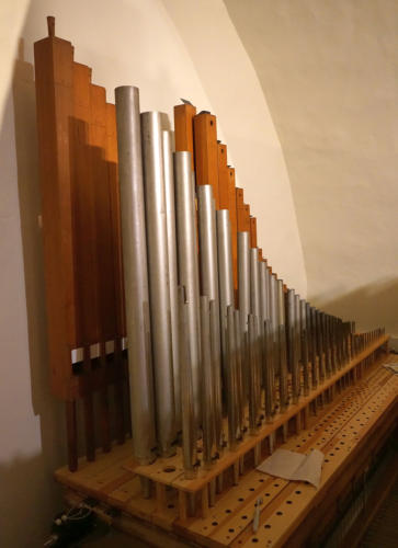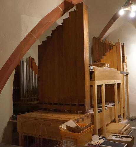 fehlt noch das Orgelgehäuse, welches die hier sichtbaren Einblicke in das Orgelwerk zukünftig